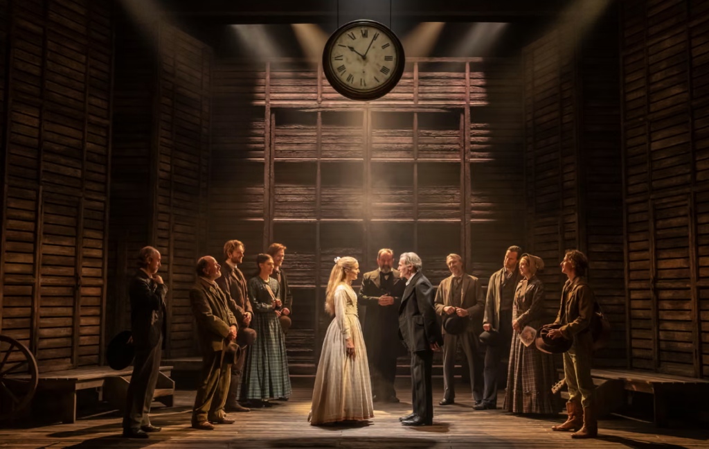Visually, it is quite theatrical: the massive clock hanging in the centre counting down the time; the dusty desert‑town feel; the period costumes, which are a joy to take in; and the flexibility of the stage with its deft scene changes. I loved the conjuring of the train.
