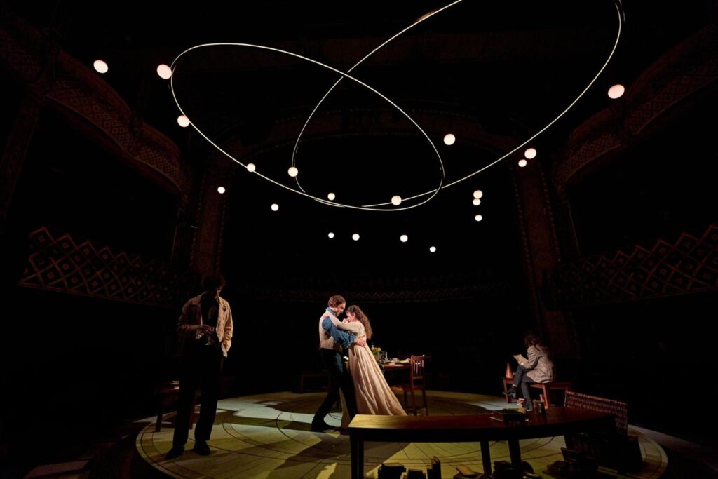 Perhaps that is why watching Stoppard’s Arcadia felt like stepping into a dramatised extension of my everyday life. In my mind, I pictured Merlin from Disney’s The Sword in the Stone waving his magic wand, tossing in a dash of Oscar Wilde’s wit, the sparring energy of sharp-tongued Benedick and Beatrice, and a hint of Agatha Christie detective story, all swirling together in the round beneath a mobile that resembles both planetary orbits and atomic structures